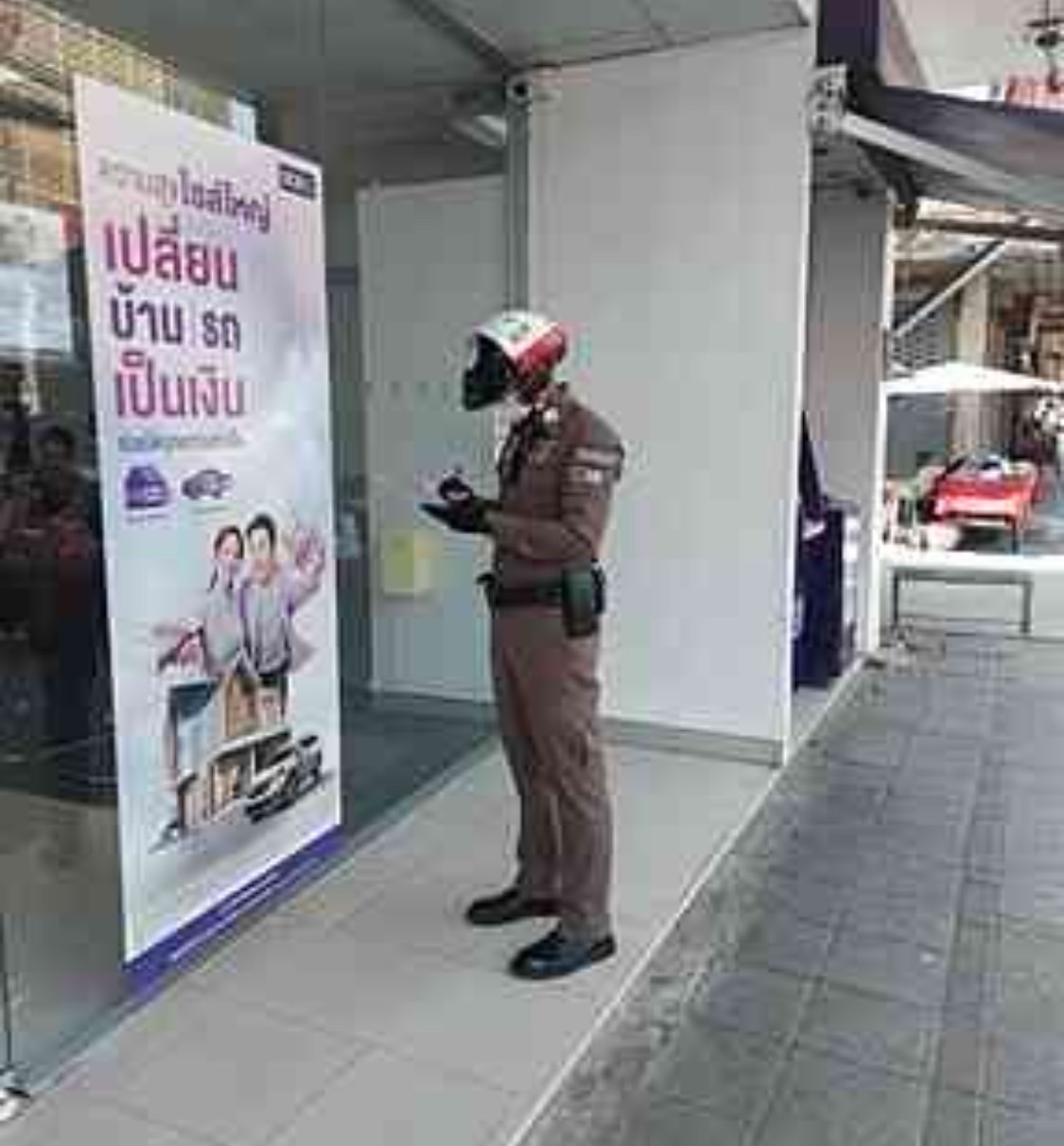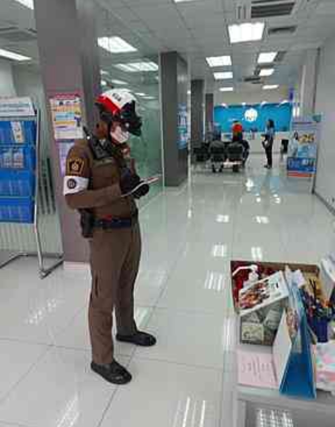 ร.ต.อ.วิโรจน์ ยอดบุรุษ รอง สว.(จร.)สภ.เมืองราชบุรี ปฎิบัติหน้าที่ตรวจธนาคาร ร้านทองถนนศรีมหาเกษตร ถนนอัมรินทร์ ขณะปฎิบัติหน้าที่เหตุการณ์ปกติ การจราจรคล่องตัว