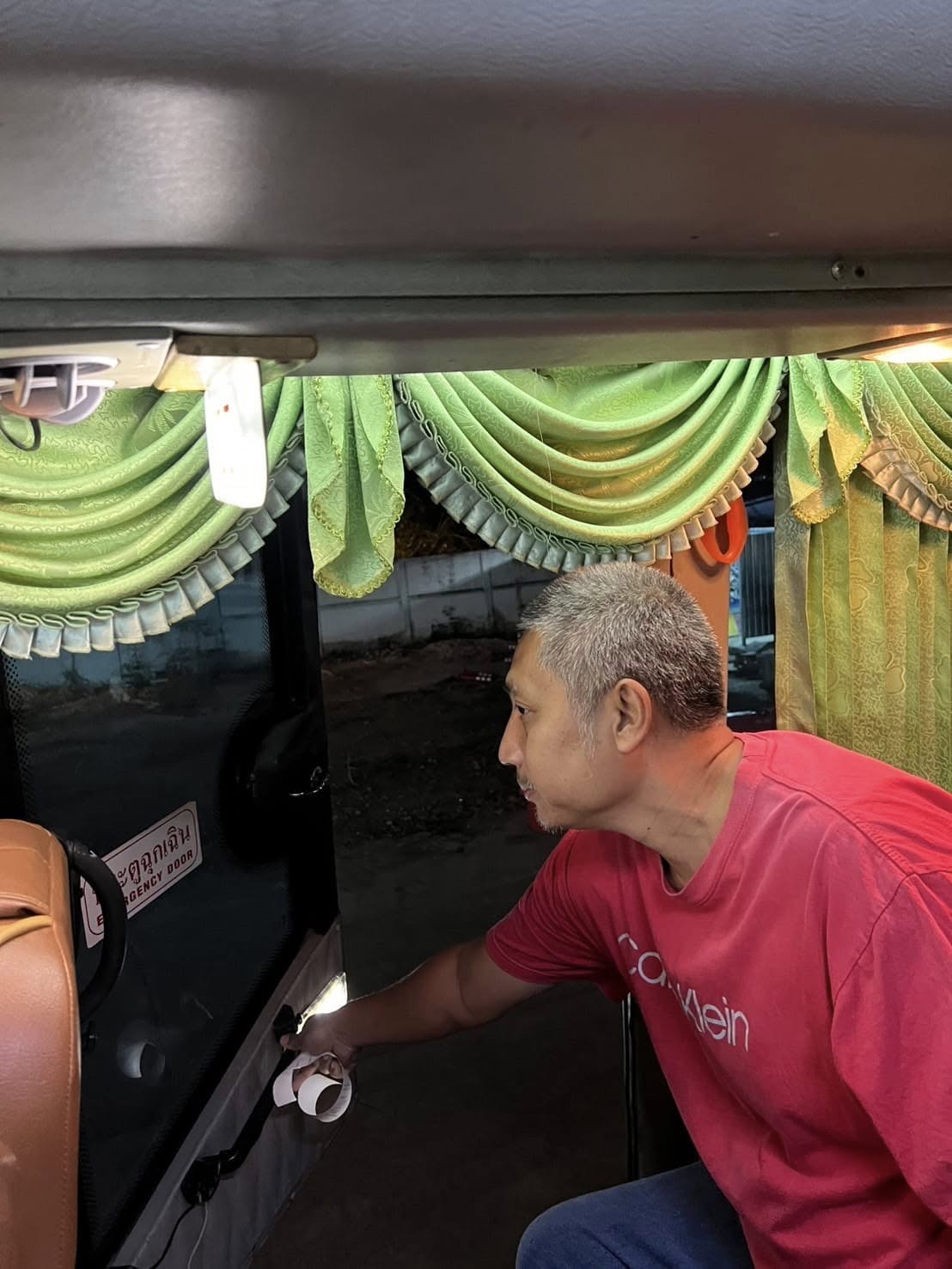 2.ตรวจสอบสภาพความพร้อมของรถ สภาพยาง ประตูฉุกเฉิน อุปกรณ์ที่ทุบกระจก ถังดับเพลิง รถมีสภาพมั่นคงแข็งแรง