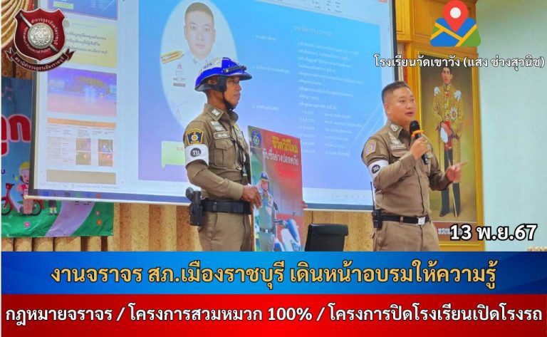 เมื่อวันที่ 31 ธ.ค.67 ตั้งแต่เวลา 23.00 น. พล.ต.ต.วชิรพงษ์ อมราพิทักษ์ ผบก.ภ.จว.ราชบุรี พ.ต.อ.ทรงวุฒิ เจริญวิชยเดช ผกก.สภ.เมืองราชบุรี ออกตรวจเยี่ยมให้กำลังใจเจ้าหน้าที่ตำรวจในการดูแลรักษาความปลอดภัย และอำนวยความสะดวกด้านการจราจรแก่ประชาชน และนักท่องเที่ยว ที่เดินทางมาร่วมกิจกรรมเคาท์ดาวน์ปีใหม่ 2568 ในการนี้ได้แจกหมวกนิรภัยที่มีมาตรฐานอุตสาหกรรม(มอก.) ให้แก่ประชาชนผู้ใช้รถจักรยานยนต์ไม่สวมหมวกนิรภัยในช่วงเทศกาลปีใหม่ พ.ศ.2568 ตามโครงการจิตอาสาจราจร รณรงค์การขับขี่ปลอดภัย สวมหมวกนิรภัย เพื่อลดอุบัติเหตุจราจรทางบก ในช่วงเทศกาลปีใหม่ พ.ศ.2568 ณ ริมเขื่อนรัฐประชาพัฒนา “ริมน้ำราชบุรี” จว.ราชบุรี