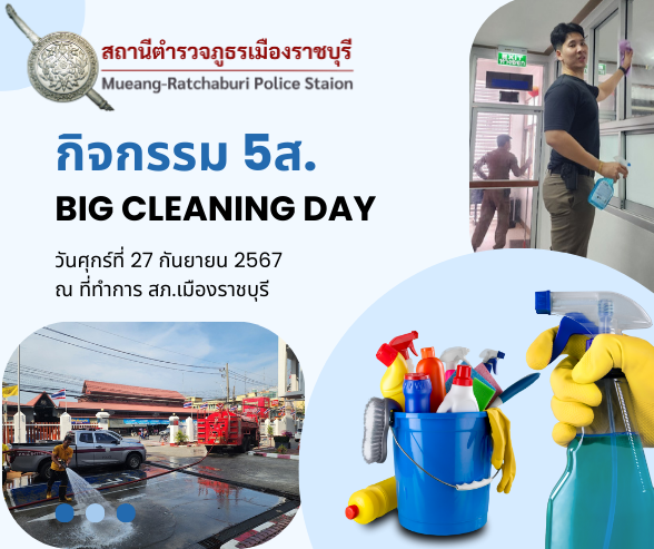 เมื่อวันที่ 27 กันยายน 2567 สภ.เมืองราชบุรี กำหนดจัดกิจกรรม 5ส. (Big Cleaning Day) ครั้งที่ 3 ประจำป