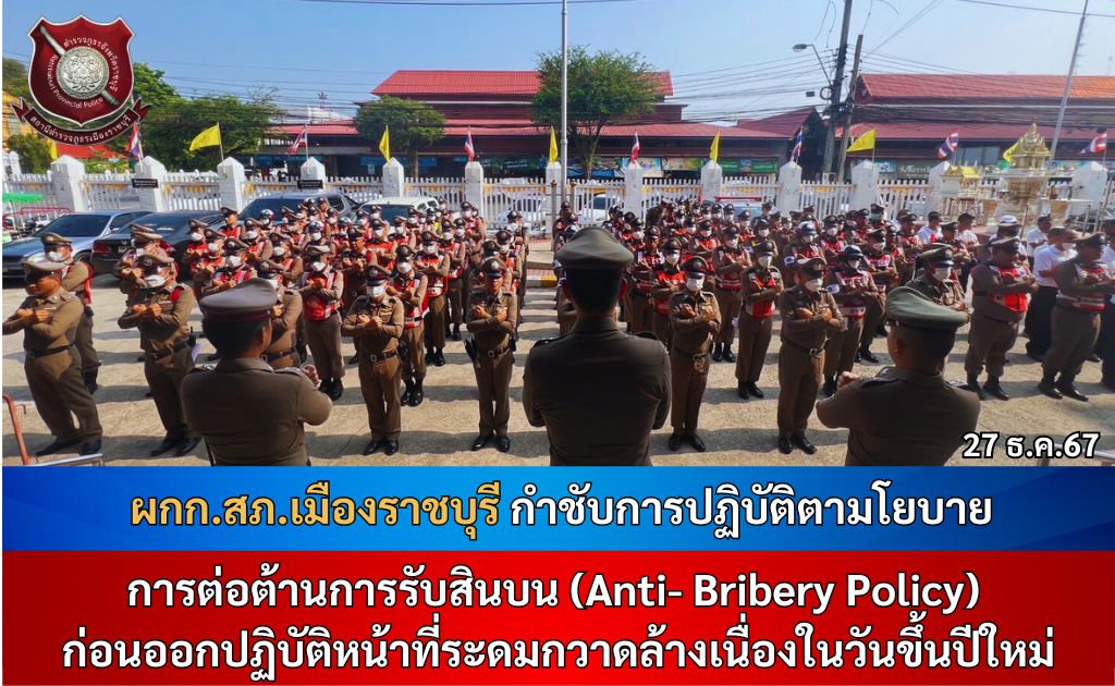 เมื่อวันที่ 27 ธ.ค.67 เวลา 08.30 น. พ.ต.อ.ทรงวุฒิ เจริญวิชยเดช ผกก.สภ.เมืองราชบุรี พ.ต.ท.ต้องชนะ