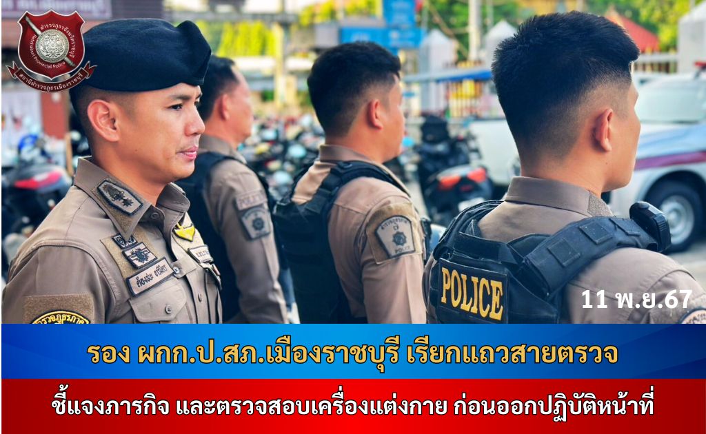 วันที่ 15 พ.ย.67 เวลา 17.00 น.พ.ต.อ.ทรงวุฒิ เจริญวิชยเดชผกก.สภ.เมืองราชบุรีพ.ต.ท.ต้องชนะ อารีมิตรรอง