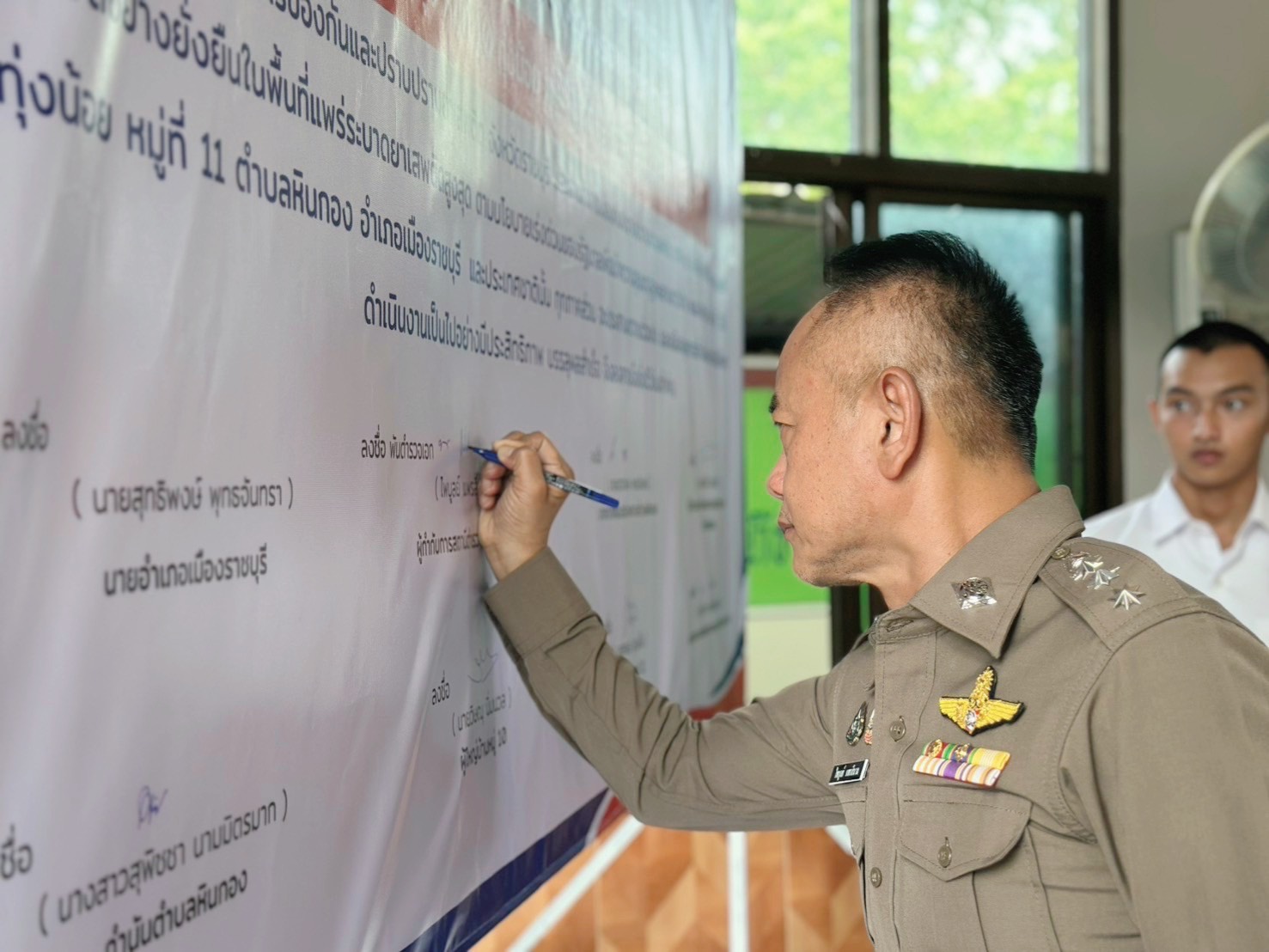 พร้อมร่วมลงนามข้อตกลงการดำเนินโครงการฯ (MOU) โดยมี นายสุทธิพงษ์ พุทธจันทรา นายอำเภอเมืองราชบุรี เป็นประธานในพิธี ณ บ้านศาลาวัดทุ่งน้อย ม.11 ต.หินกอง อ.เมืองราชบุรี จ.ราชบุรี