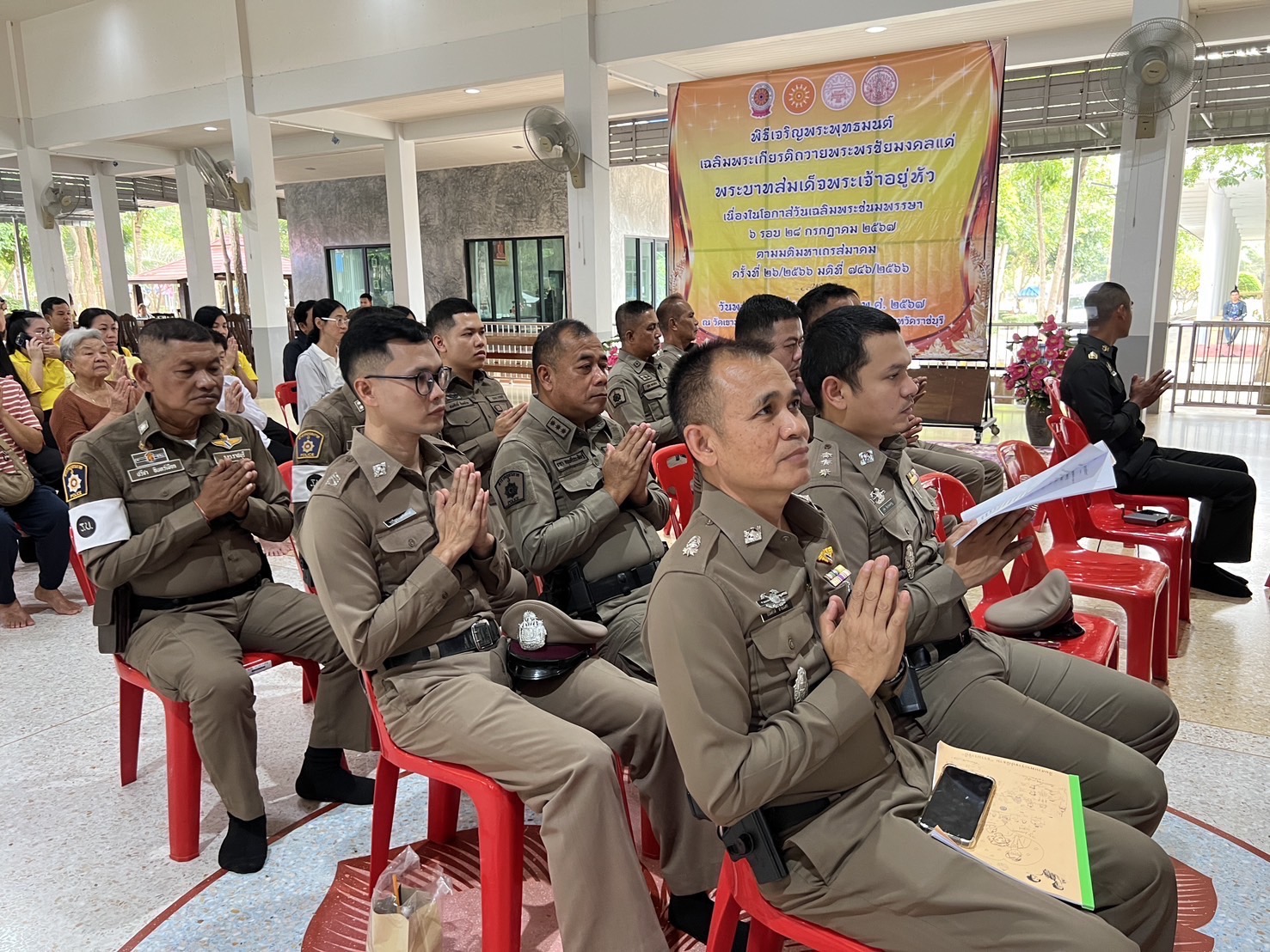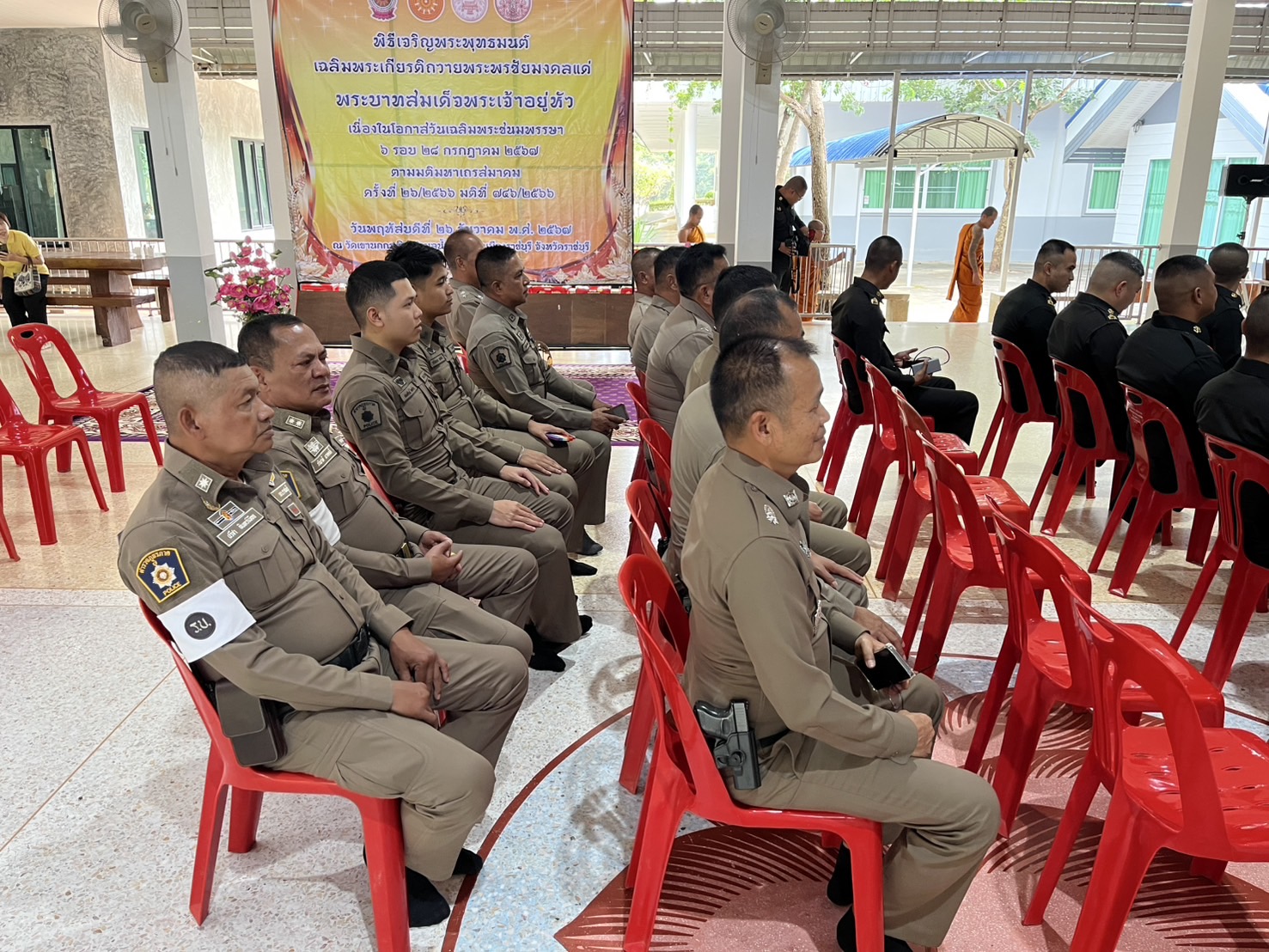 เมื่อวันที่ 26 ธ.ค.67 เวลา 14.00 น. พ.ต.อ.ทรงวุฒิ เจริญวิชยเดช ผกก.สภ.เมืองราชบุรี มอบหมายให้ พ.ต.ท.ต้องชนะ อารีมิตร รอง ผกก.ป.สภ.เมืองราชบุรี, พ.ต.ต.ธีระศักดิ์ สายเนตร สวป.(ชส.)สภ.เมืองราชบุรี พร้อมด้วยข้าราชการตำรวจ สภ.เมืองราชบุรี ร่วมพิธีเจริญพระพุทธมนต์เฉลิมพระเกียรติถวายพระพรชัยมงคลแด่ พระบาทสมเด็จพระเจ้าอยู่หัว เนื่องในโอกาสวันเฉลิมพระชนมพรรษา 6 รอบ 28 กรกฎาคม 2567 โดยมีพระราชสิริวัชร์ เจ้าคณะจังหวัดราชบุรี (ธรรมยุต) เจ้าอาวาสวัดอมรินทราราม เป็นประธานฝ่ายสงฆ์ และ นายคมกริช เจริญพัฒนสมบัติ รองผู้ว่าราชการจังหวัดราชบุรี เป็นประธานฝ่ายฆราวาส ณ วัดเขานกกระจิบ อำเภอเมืองราชบุรี จังหวัดราชบุรี