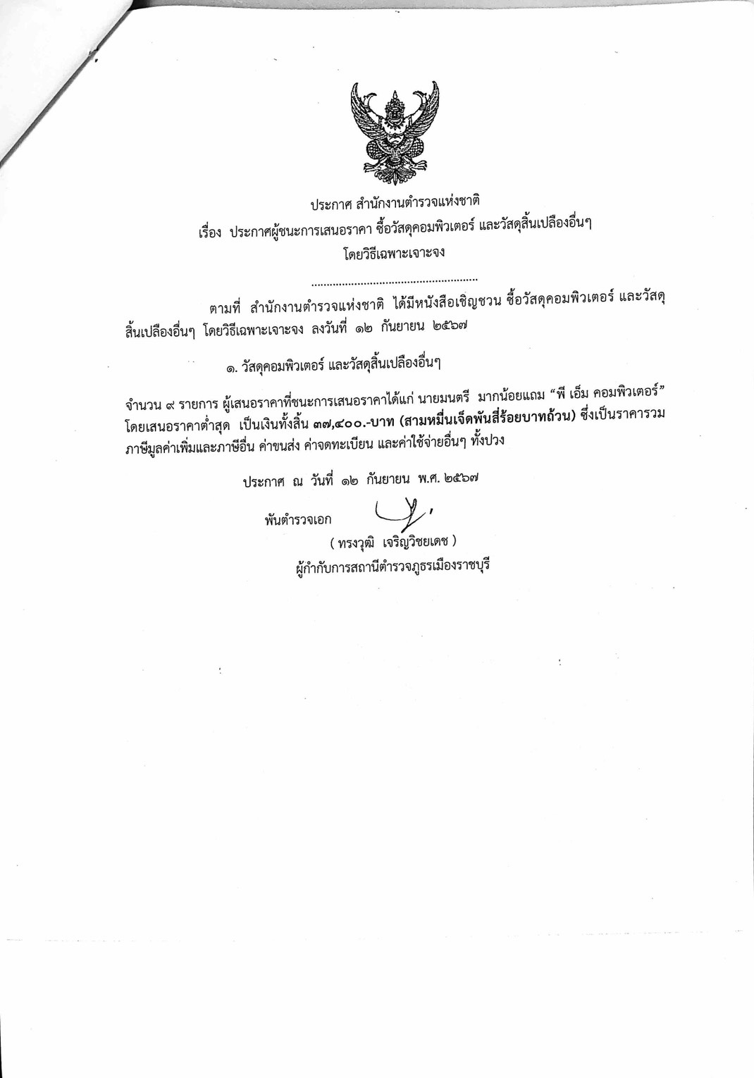 ประกาศผู้ชนะการเสนอราคา ซื้อวัสดุคอมพิวเตอร์ และวัสดุสิ้นเปลืองอื่นๆ โดยวิธีเฉพาะเจาะจง (12 ก.ย.67) 13 กันยายน 2567 โดย adm_ratchaburi adm_ratchaburi / ข่าวจัดซื้อจัดจ้าง Post Views: 21