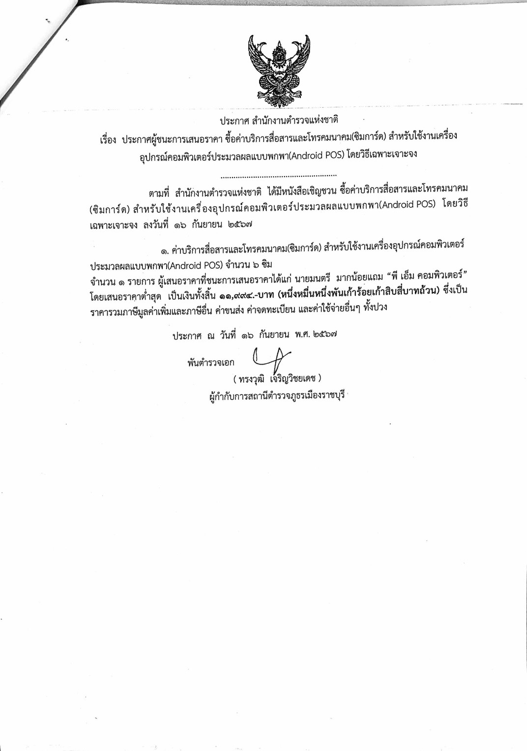 ประกาศผู้ชนะการเสนอราคา ซื้อค่าบริการสื่อสารและโทรคมนาคม(ซิมการ์ด) สำหรับใช้งานเครื่องอุปกรณ์คอมพิวเตอร์ประมวลผลแบบพกพา(Android POS) โดยวิธีเฉพาะเจาะจง (16 ก.ย.67) 17 กันยายน 2567 โดย adm_ratchaburi adm_ratchaburi / ข่าวจัดซื้อจัดจ้าง Post Views: 36