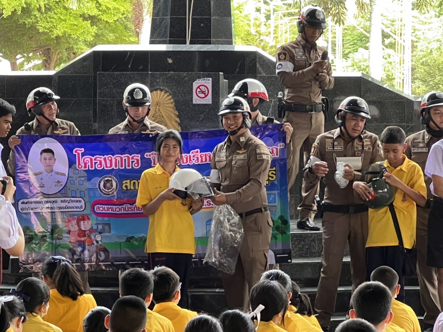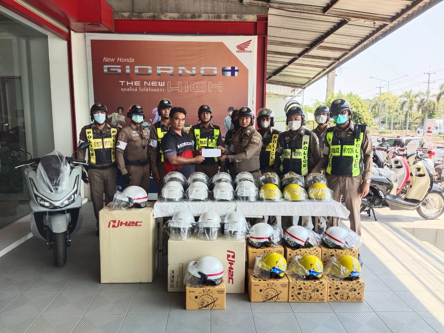 ตำรวจเมืองราช รับมอบหมวกนิรภัย เพื่อนำมาใช้ในการรณรงค์ประชาสัมพันธ์โครงการต่างๆ ในพื้นที่